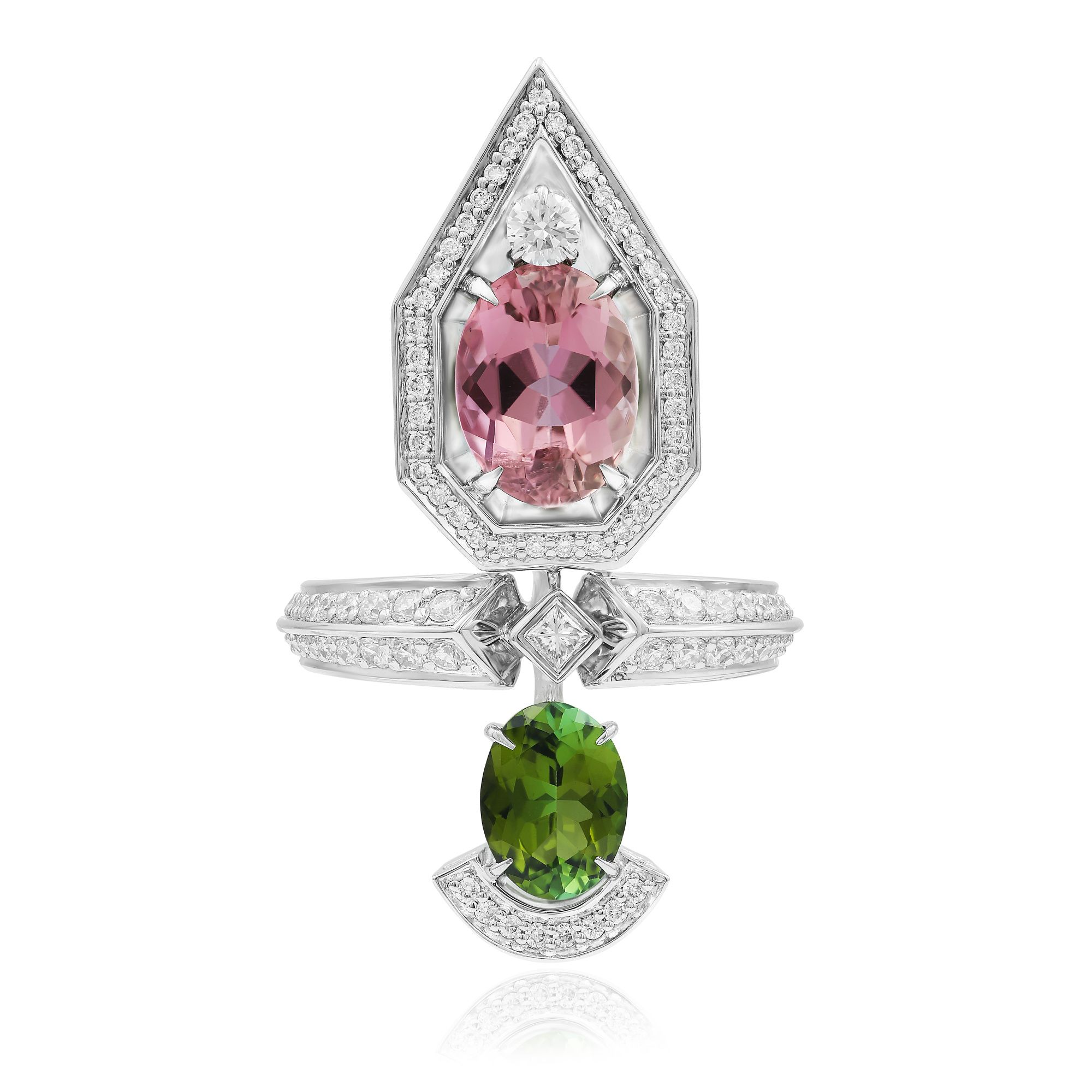 Кольцо из белого золота с турмалинами 3.275 ct и бриллиантами
