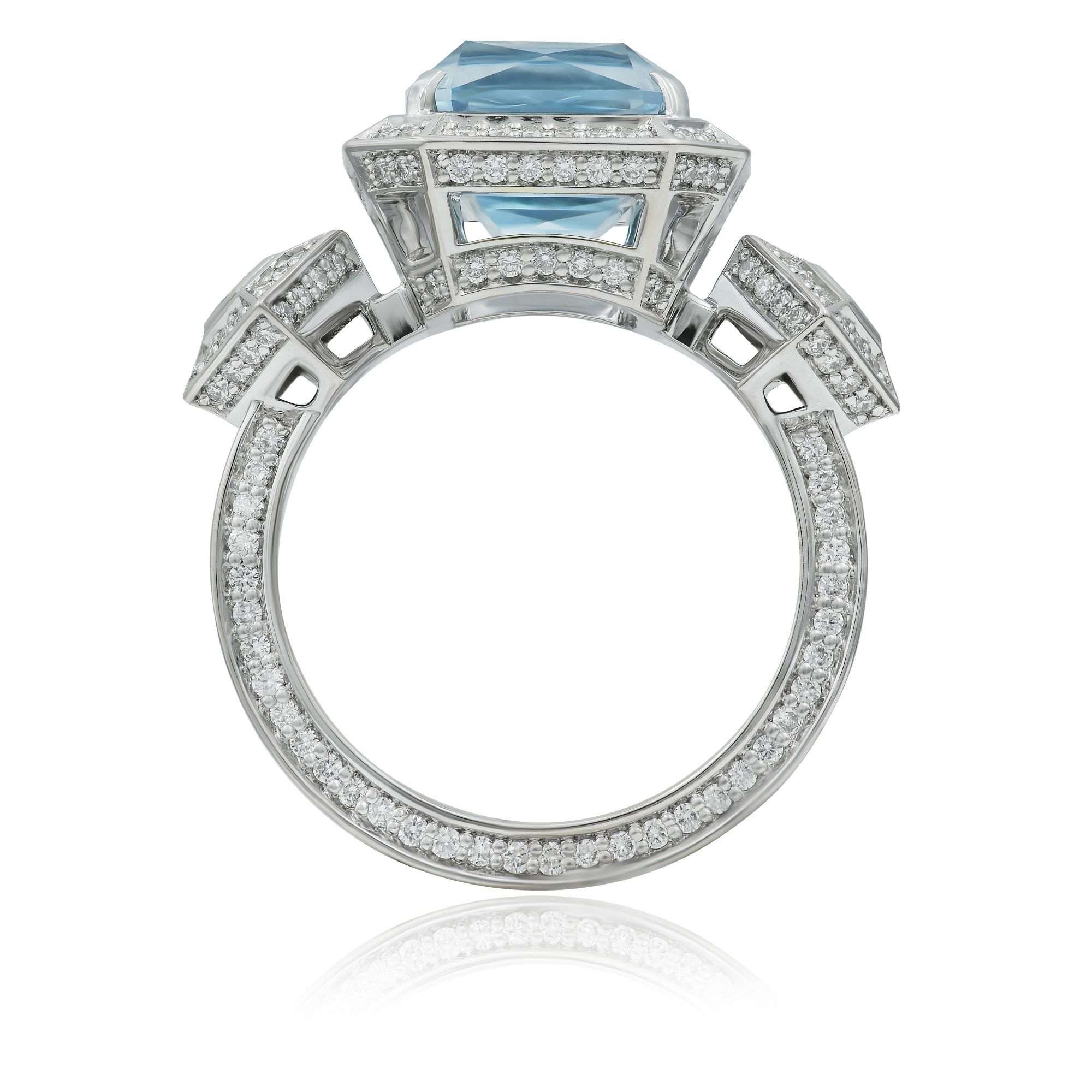 Кольцо из белого золота с аквамарином 6.1 ct и бриллиантами