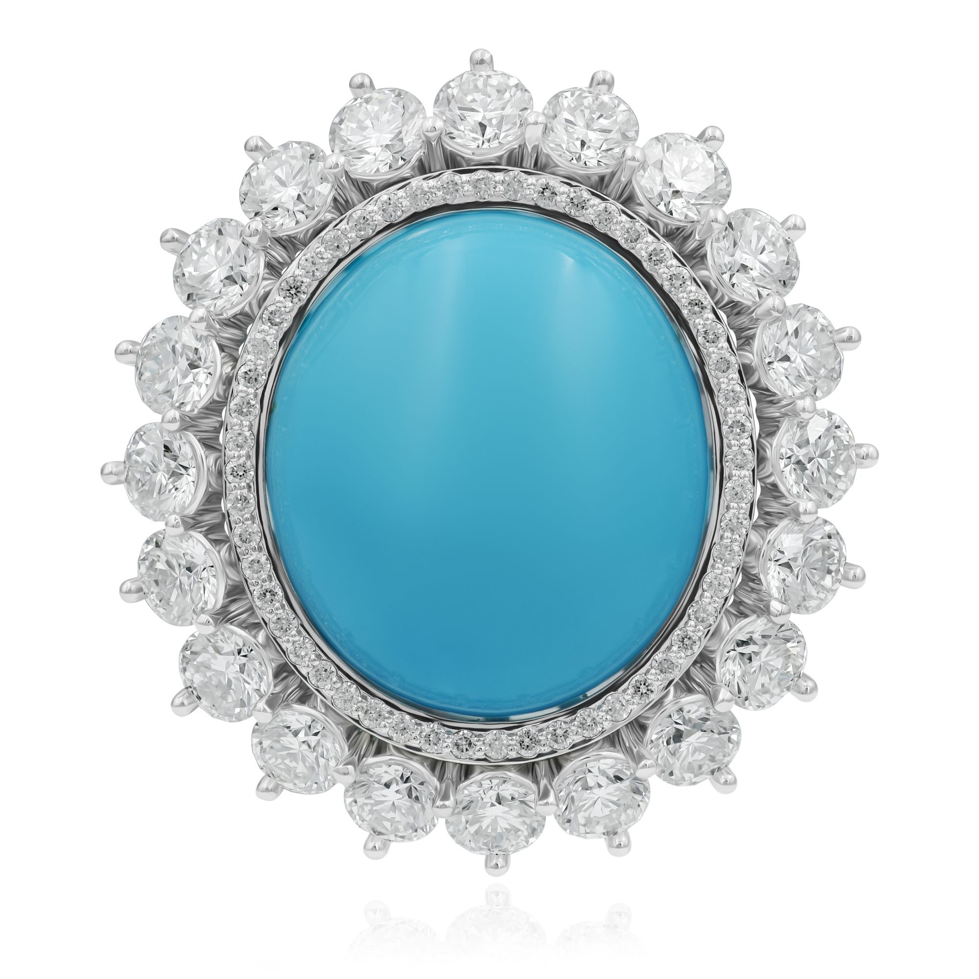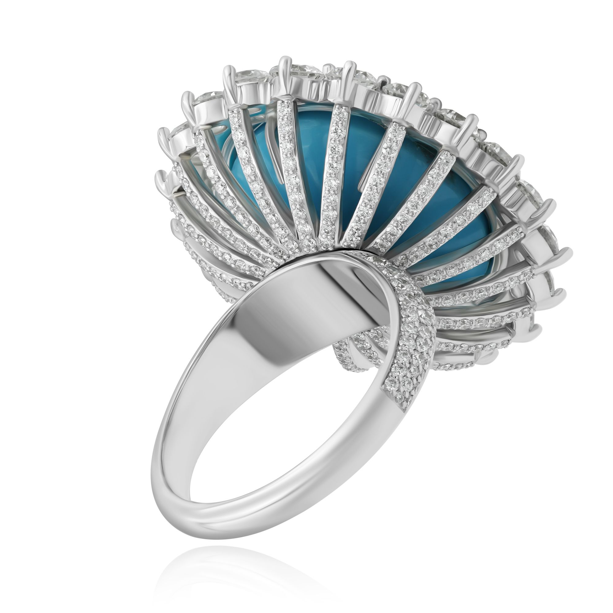 Кольцо из белого золота с бриллиантами и бирюзой 3.566 ct