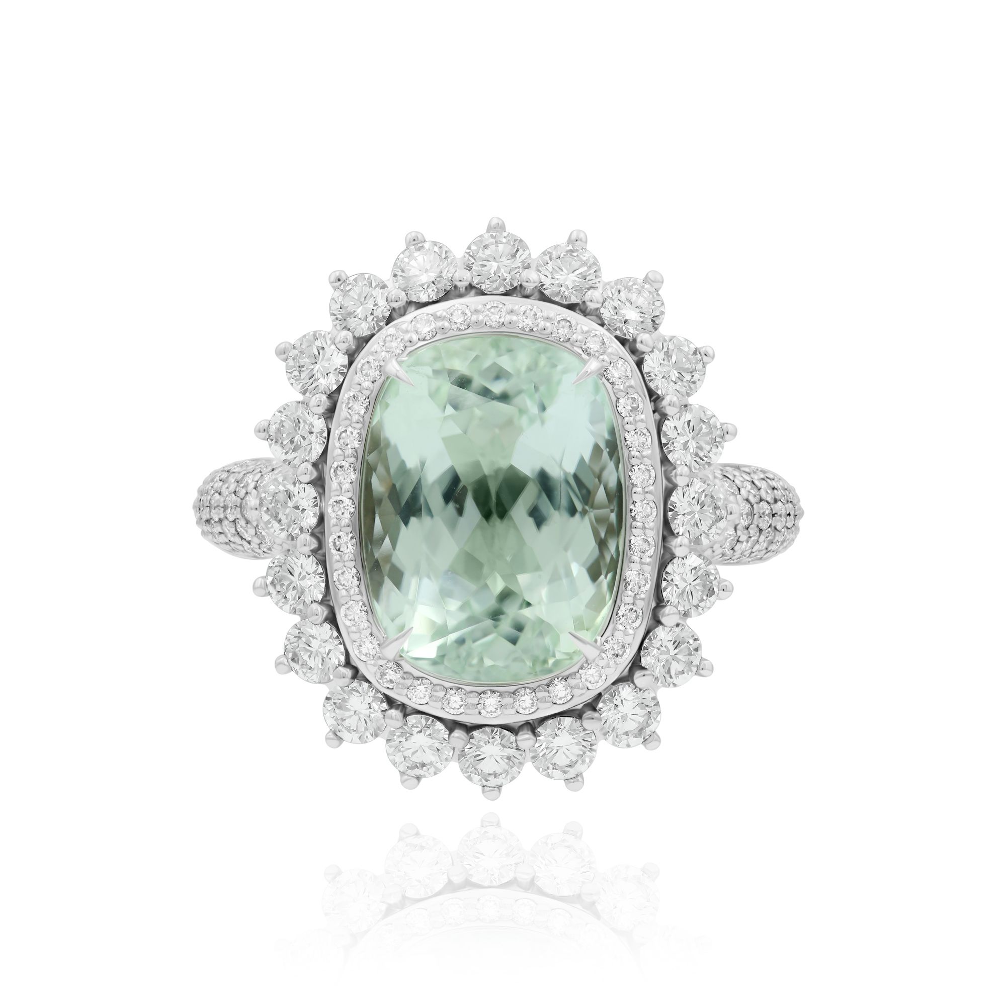 Кольцо из белого золота с бриллиантами и турмалином 5.09 ct