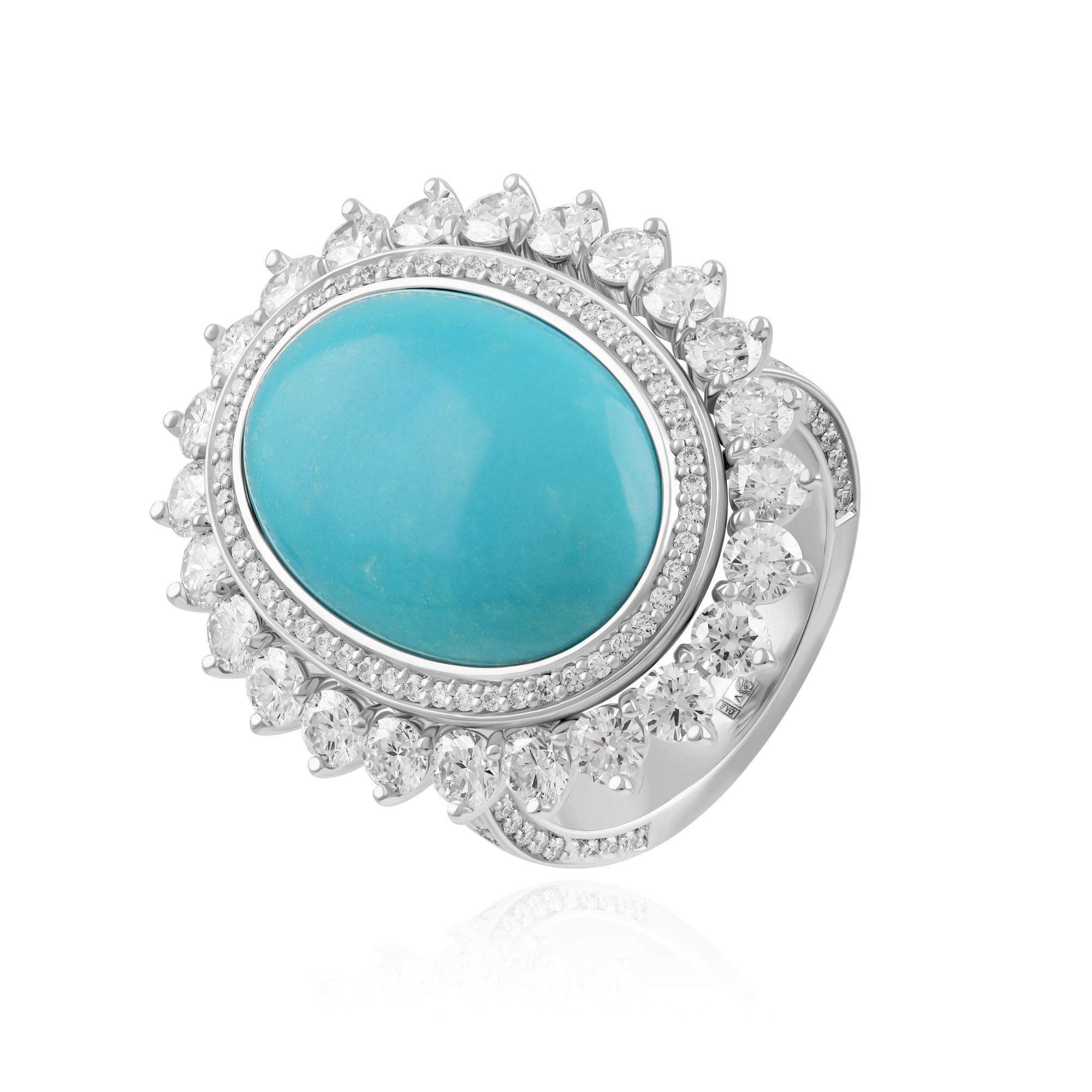 Кольцо из белого золота с бриллиантами и бирюзой 2.486 ct