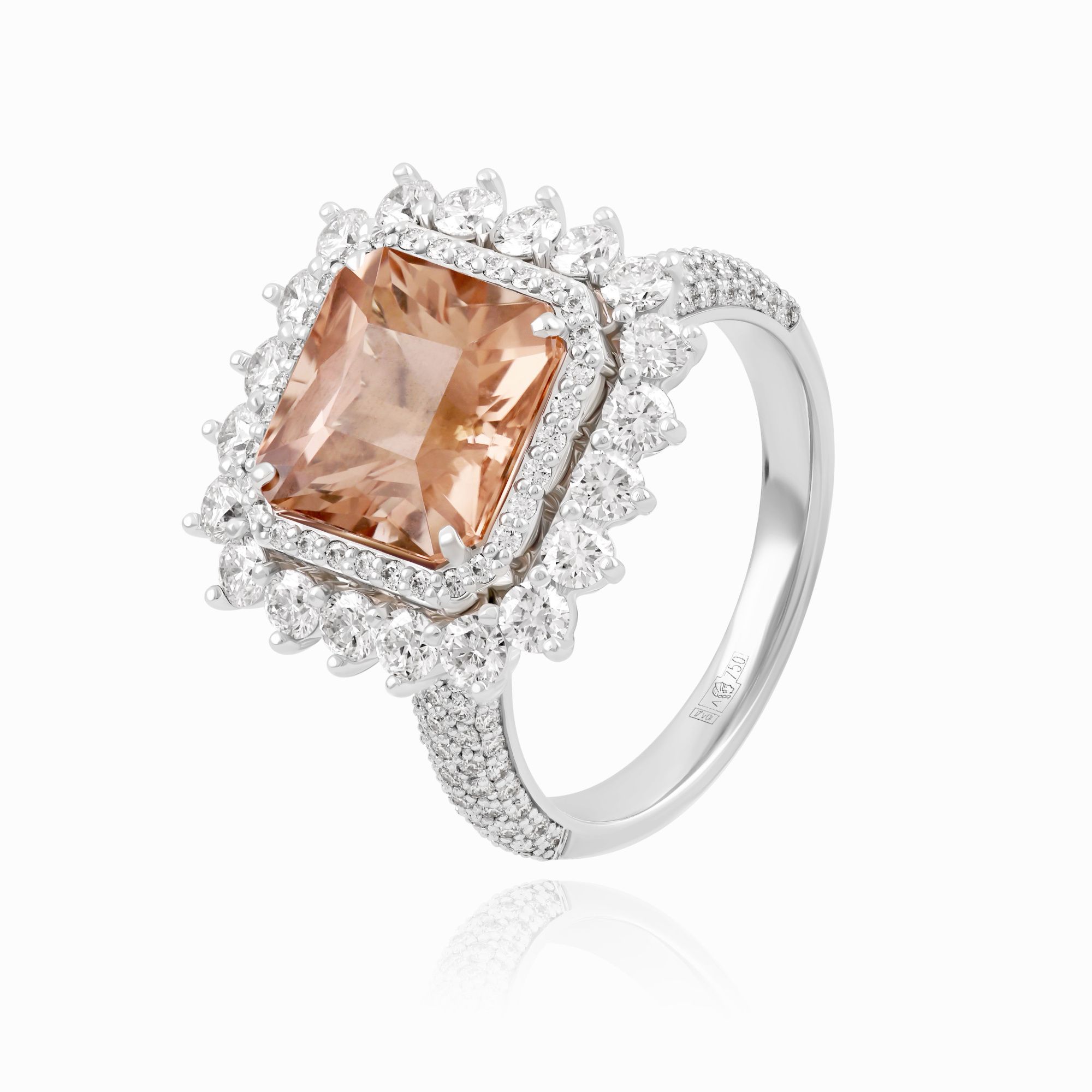 Кольцо из белого золота с турмалином и бриллиантами