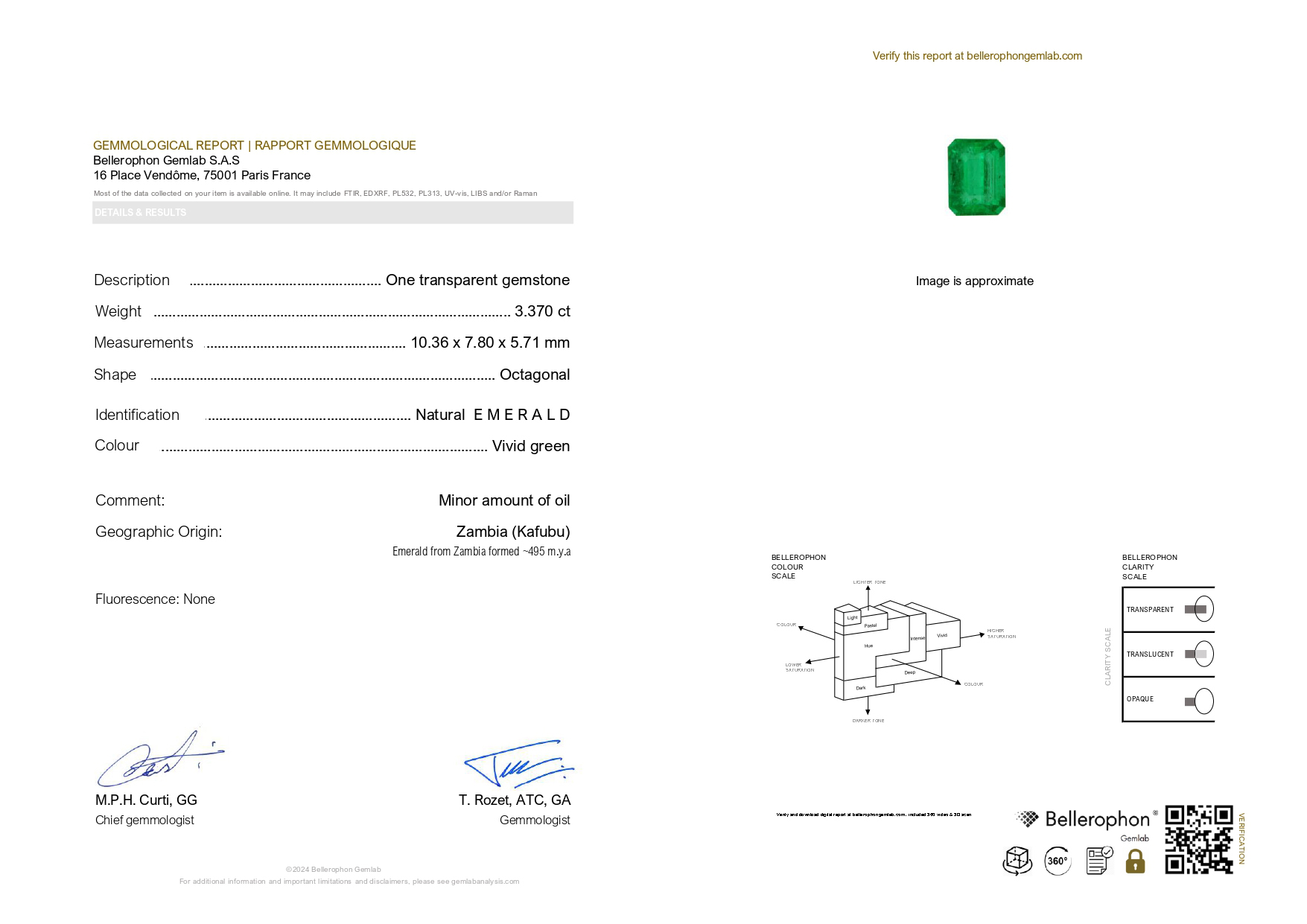 - Изумруд - Количество: 1, Форма: «Октагон», Вес: 3.370 ct.