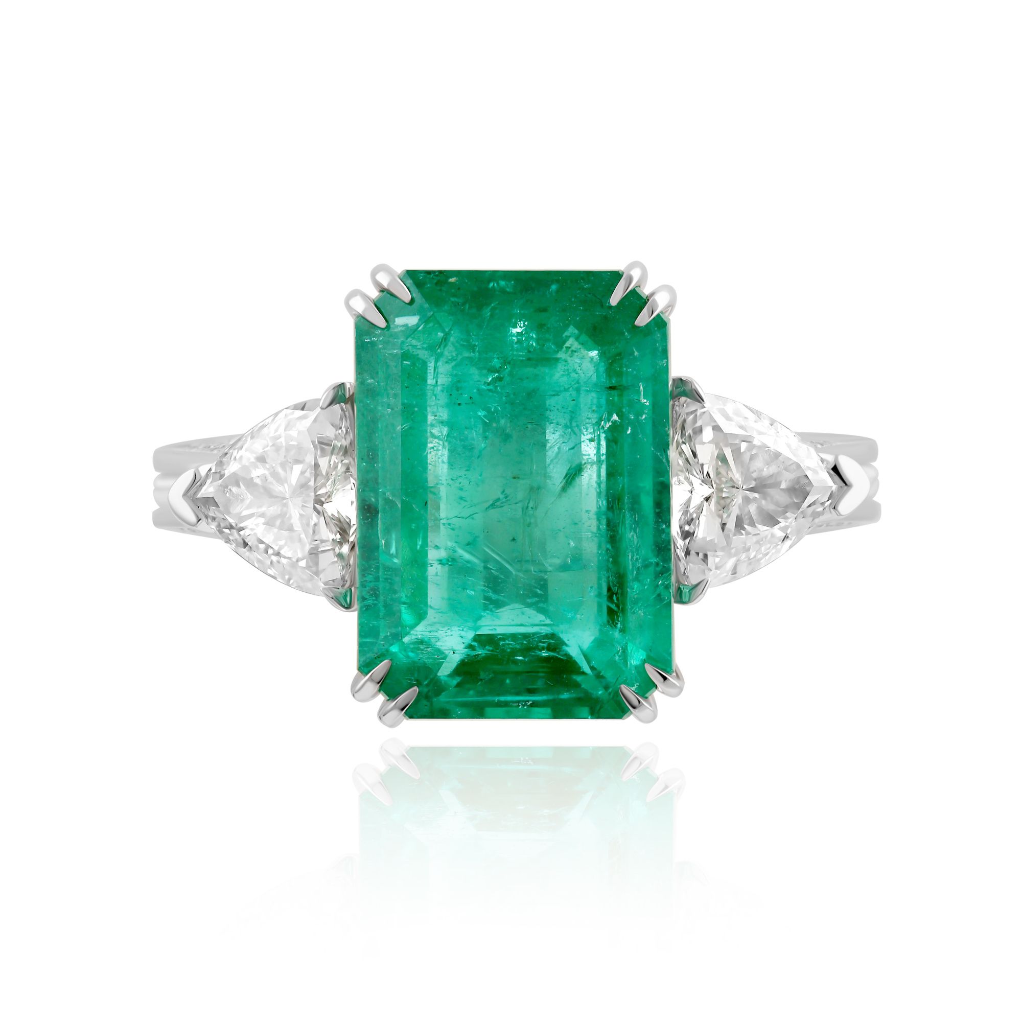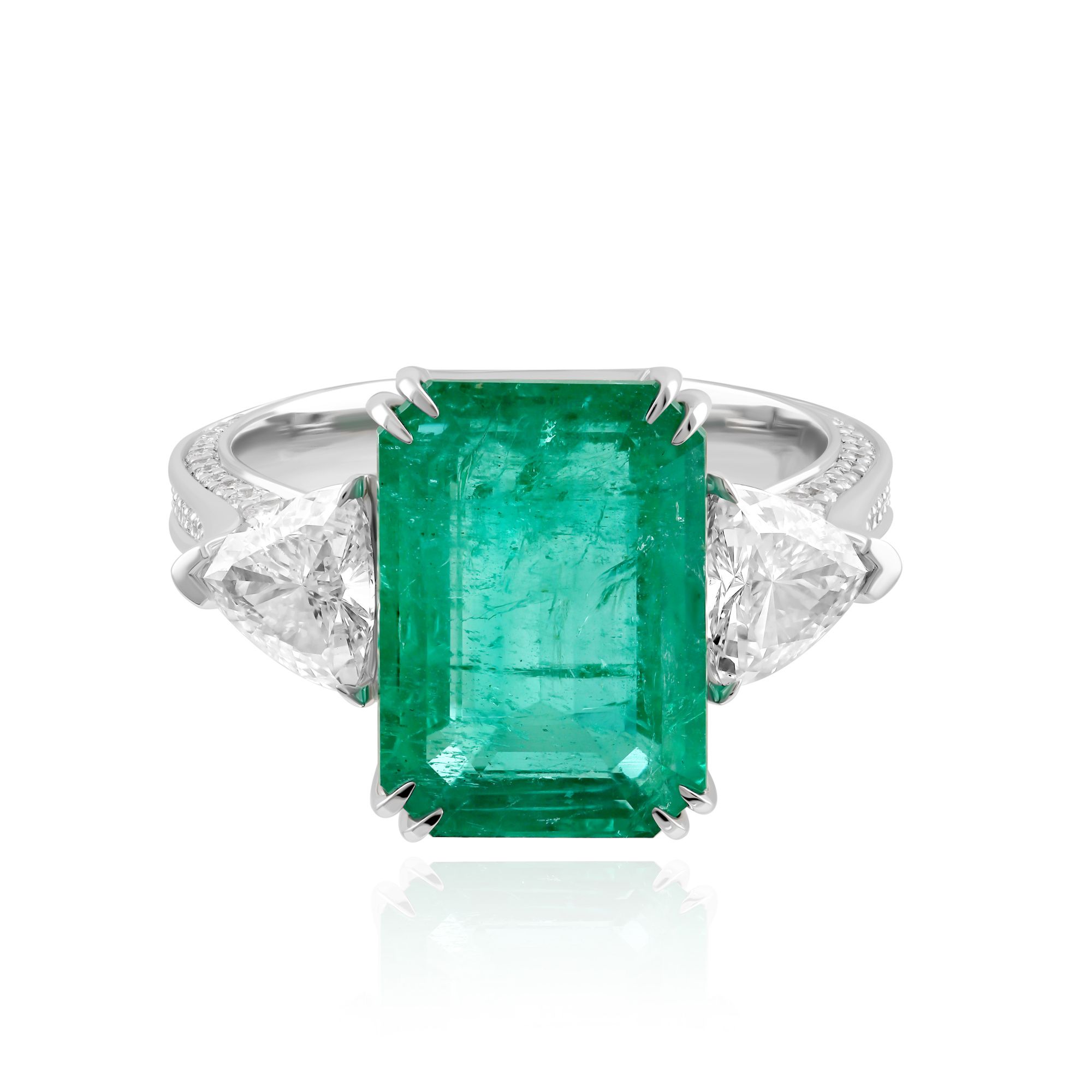 Кольцо из белого золота с бриллиантами и изумрудом 7.57 ct