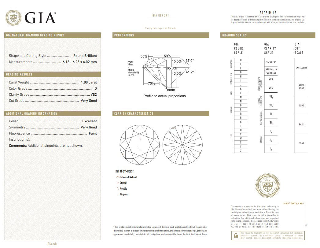 Цвет: 4 , Чистота: 6 Вес: 1.000 ct.