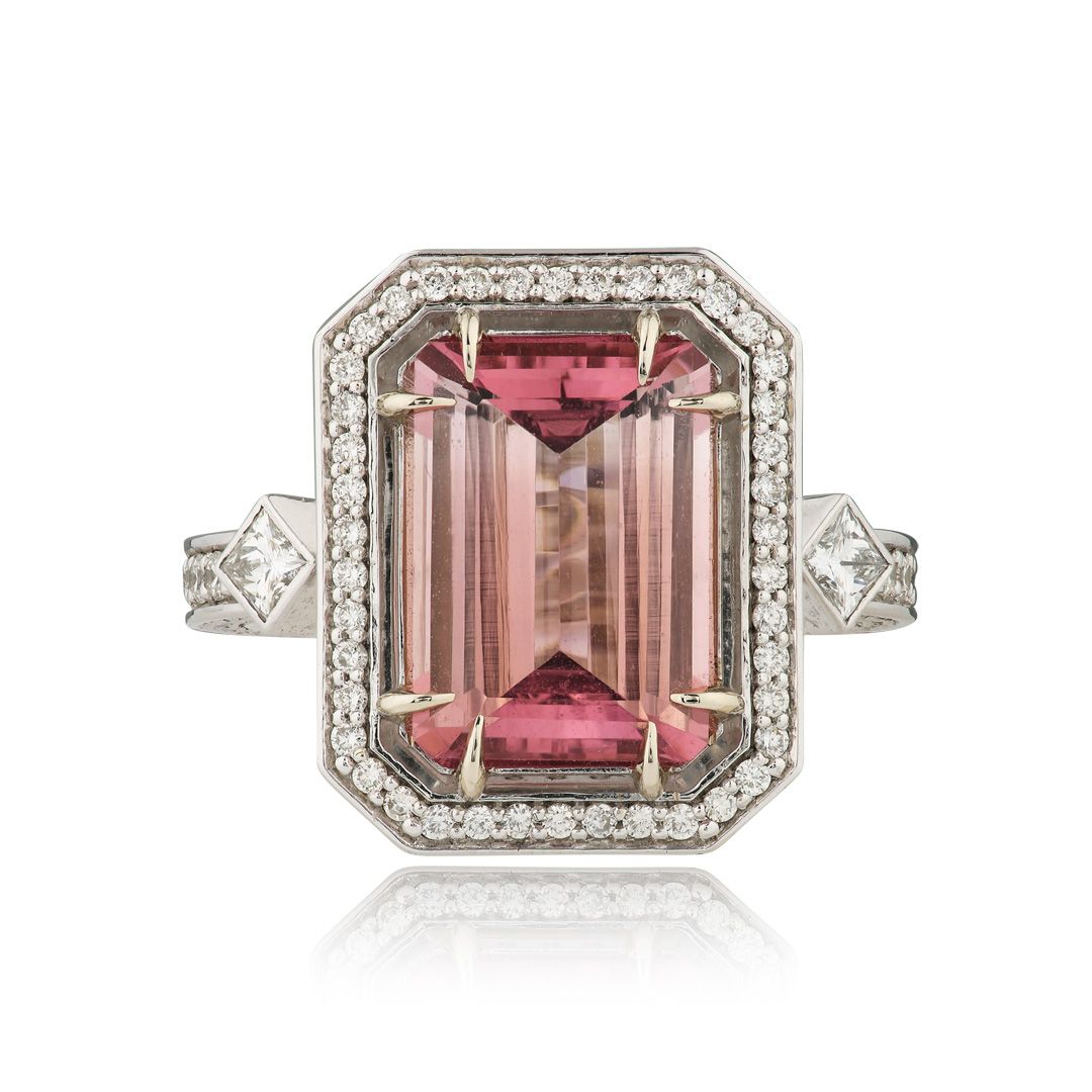 Кольцо из белого золота с турмалином 5.6 ct и бриллиантами