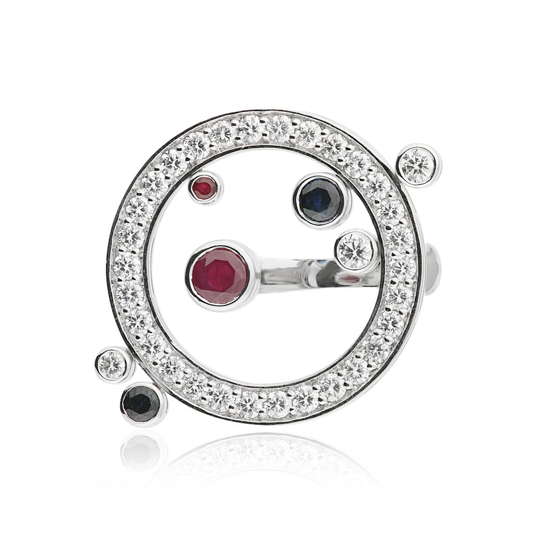 Кольцо из белого золота с рубинами, сапфирами и бриллиантами