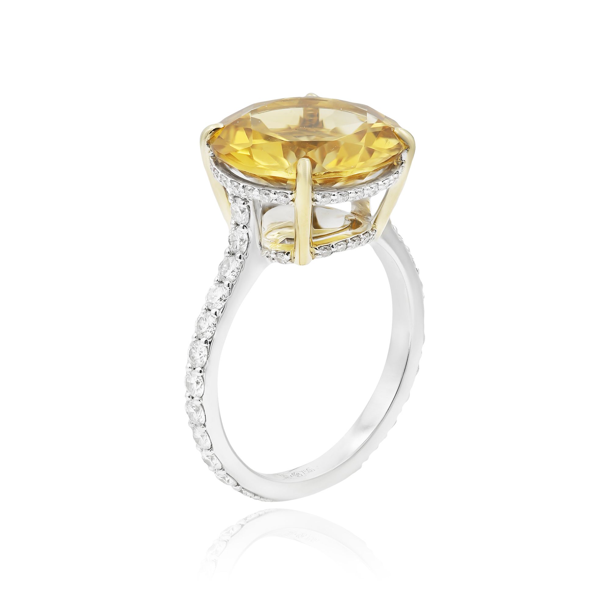 Кольцо из белого золота с цитрином 6.4 ct и бриллиантами