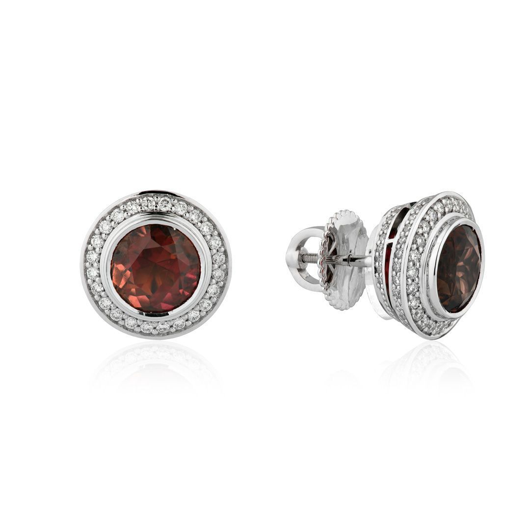 Пусеты из белого золота с турмалинами 6.665 ct и бриллиантами