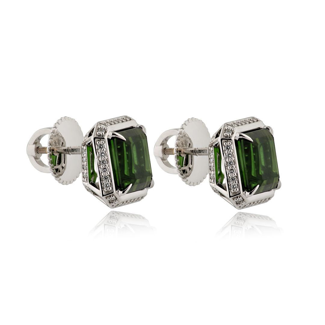 Пусеты из белого золота с турмалинами 8.84 ct и бриллиантами