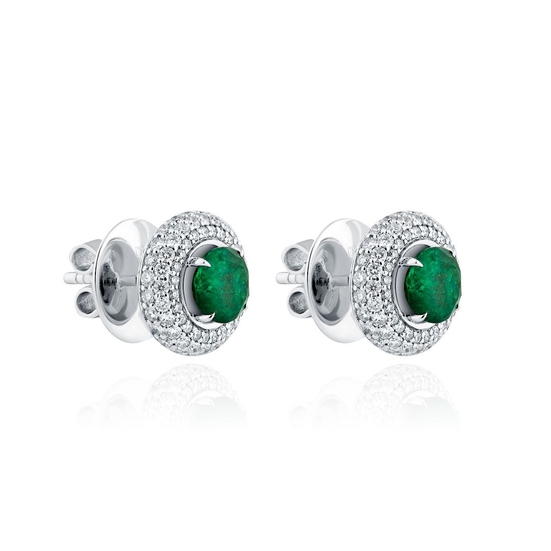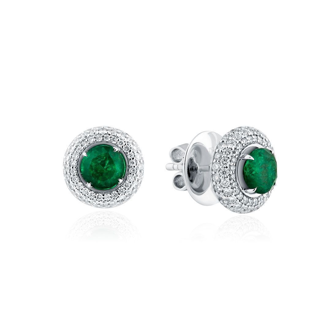 Пусеты из белого золота с изумрудами 1.61 ct и бриллиантами