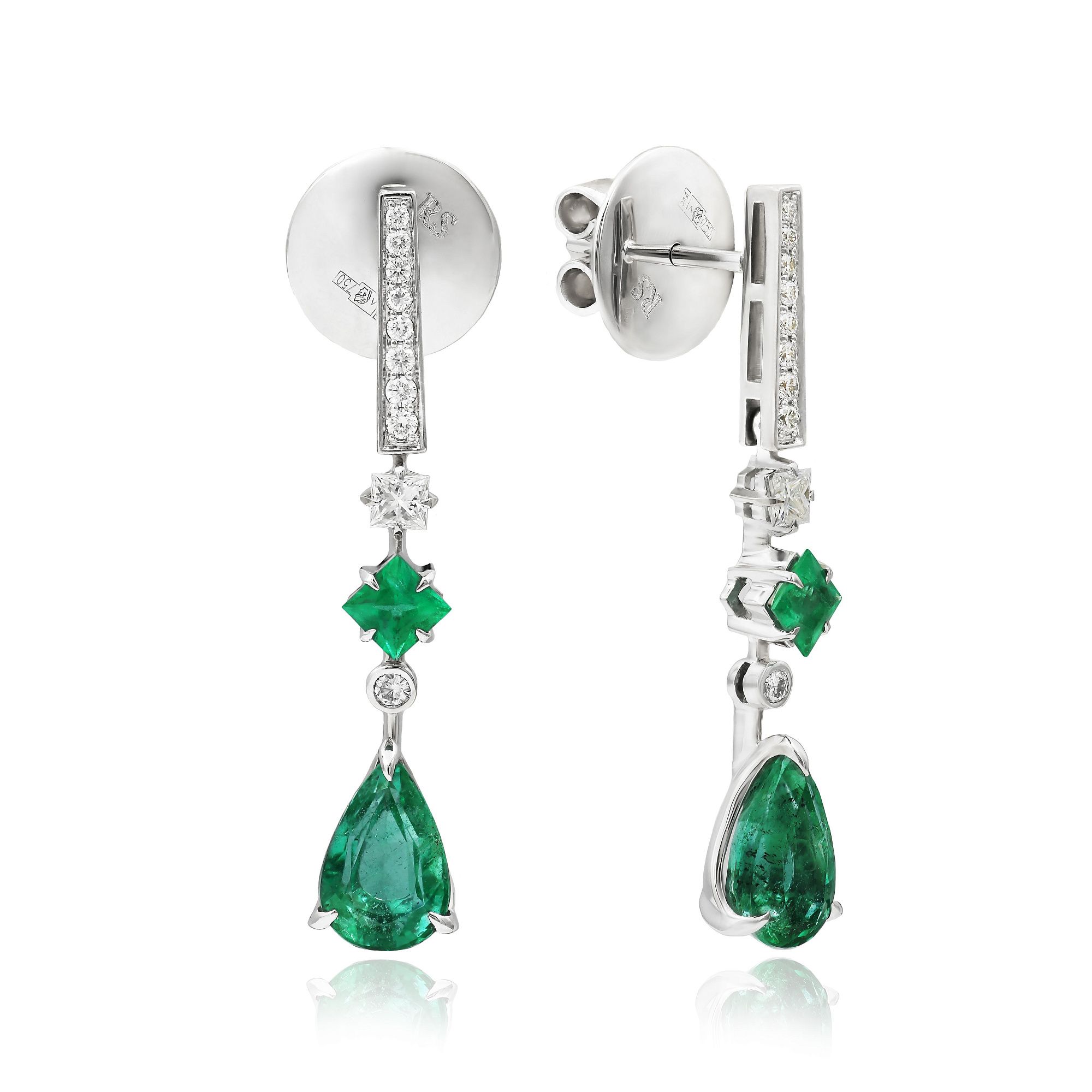 Пусеты из белого золота с изумрудами 2.73 ct и бриллиантами