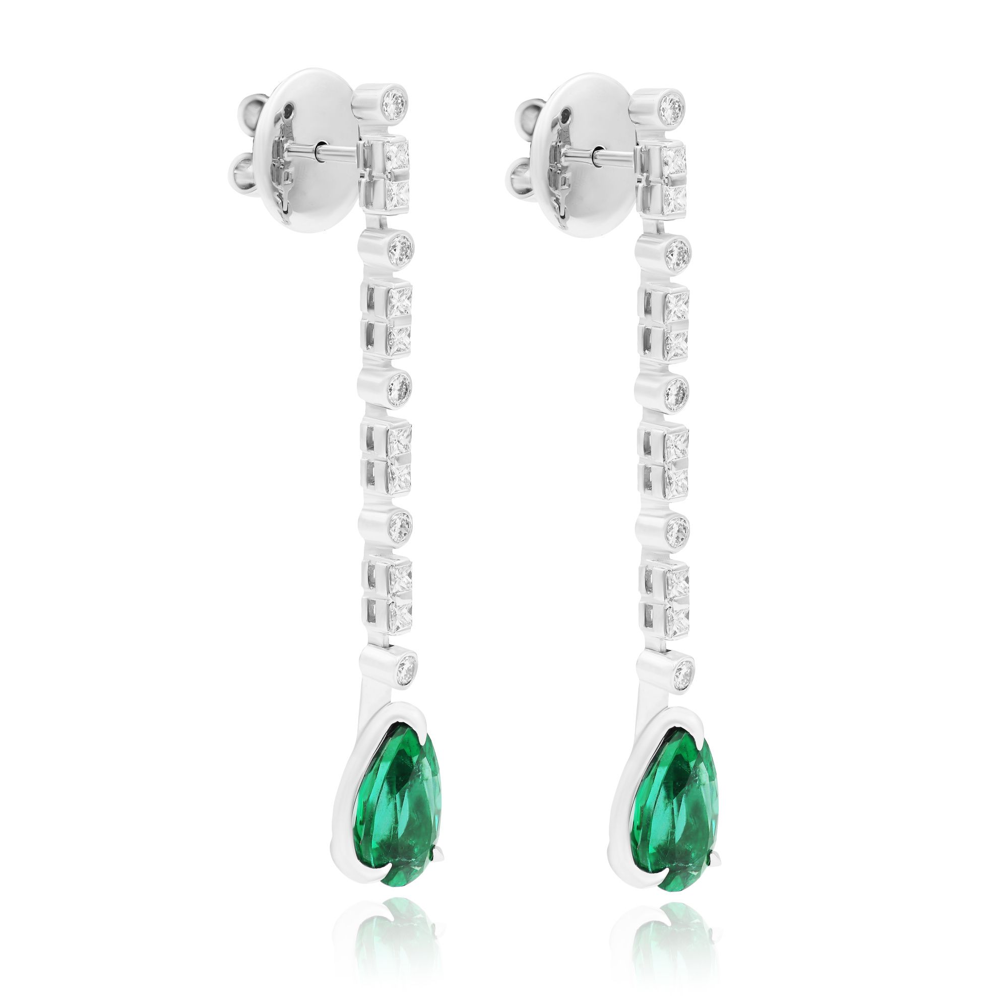 Пусеты из белого золота с изумрудами 3.56 ct и бриллиантами