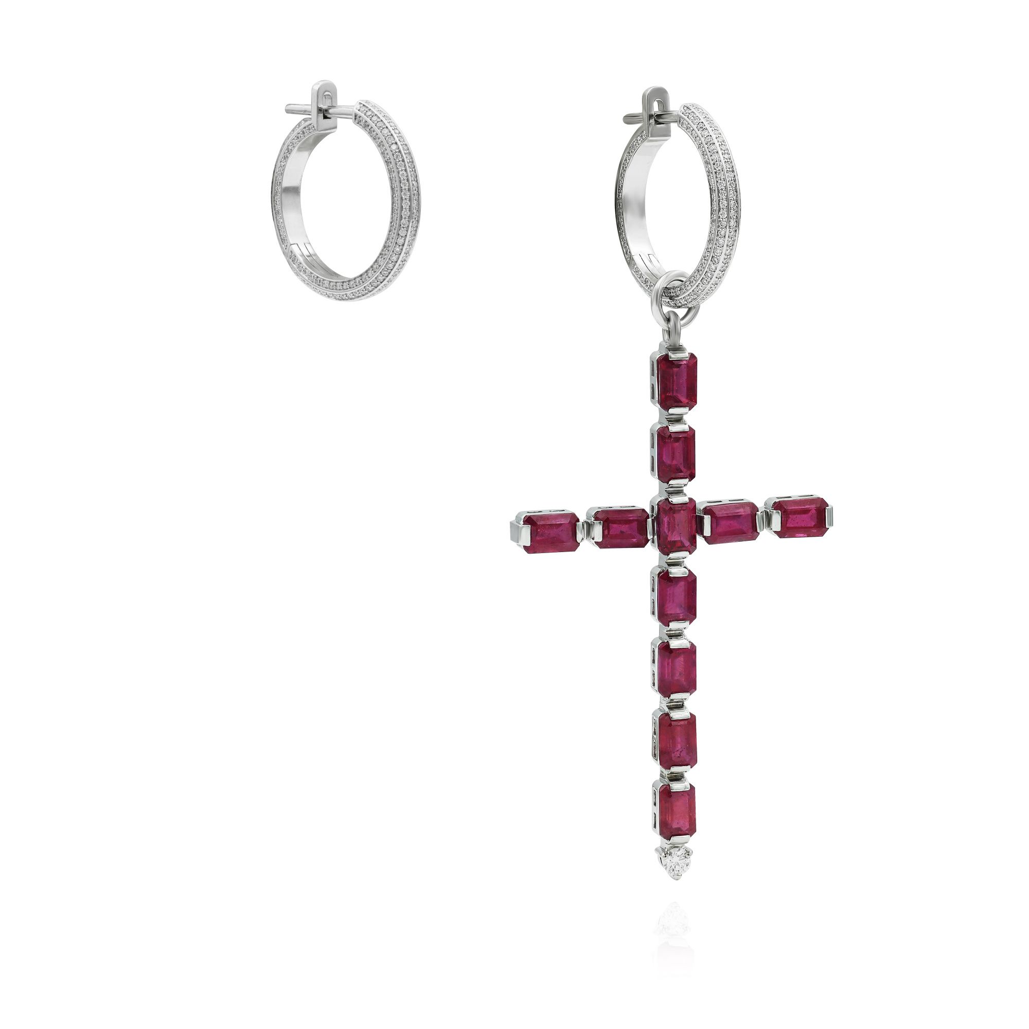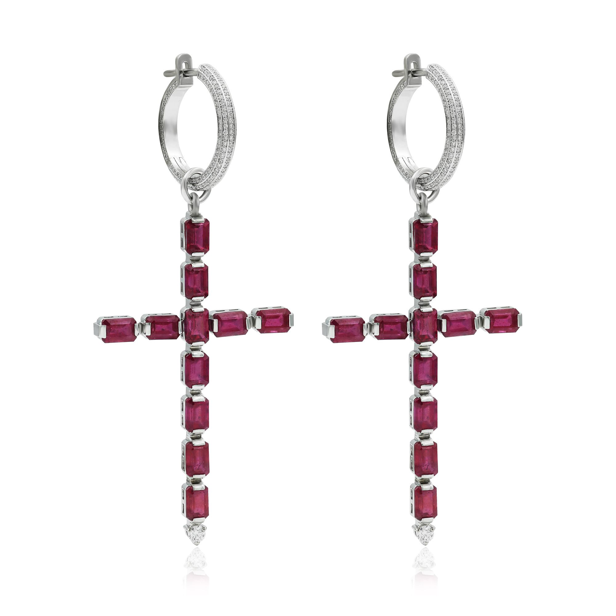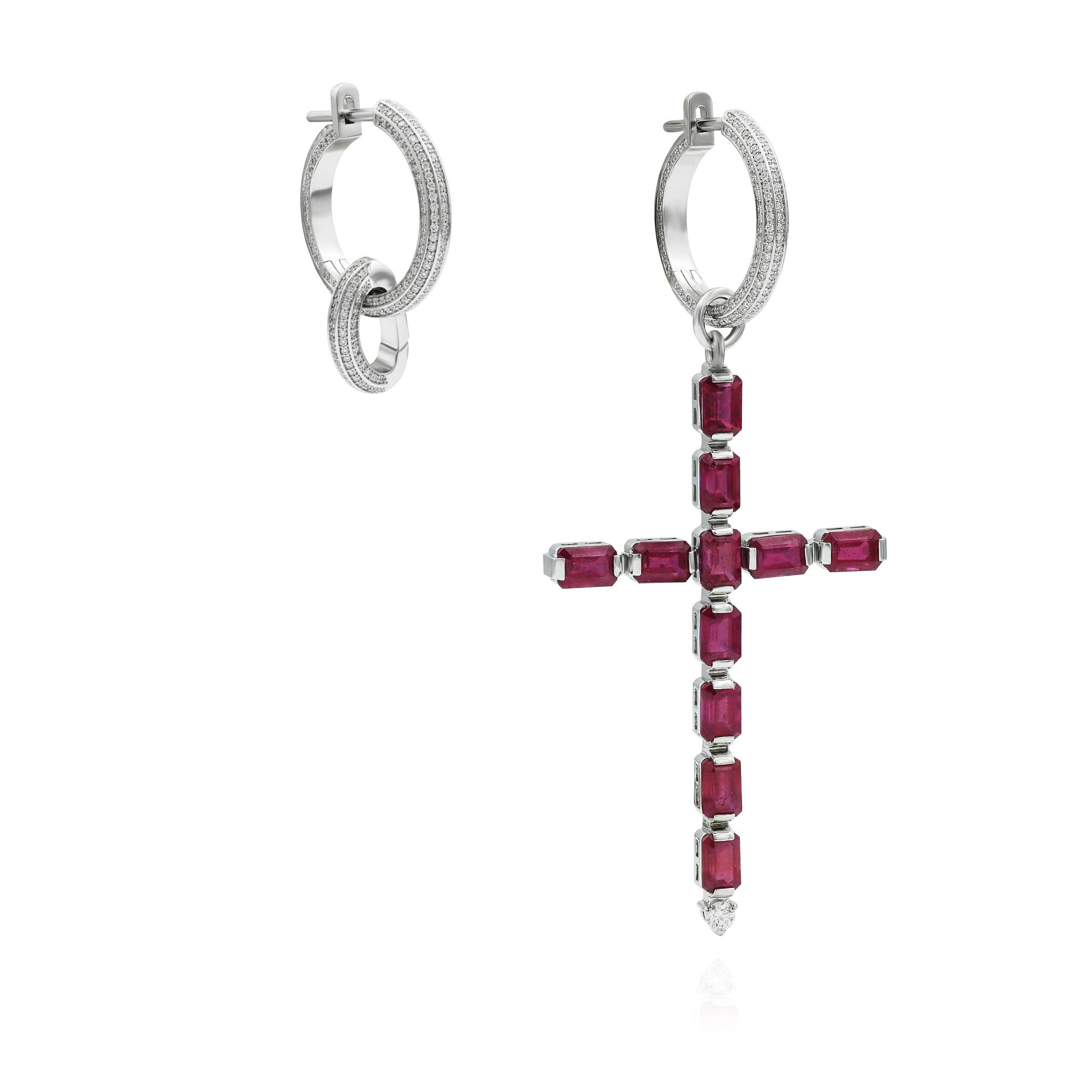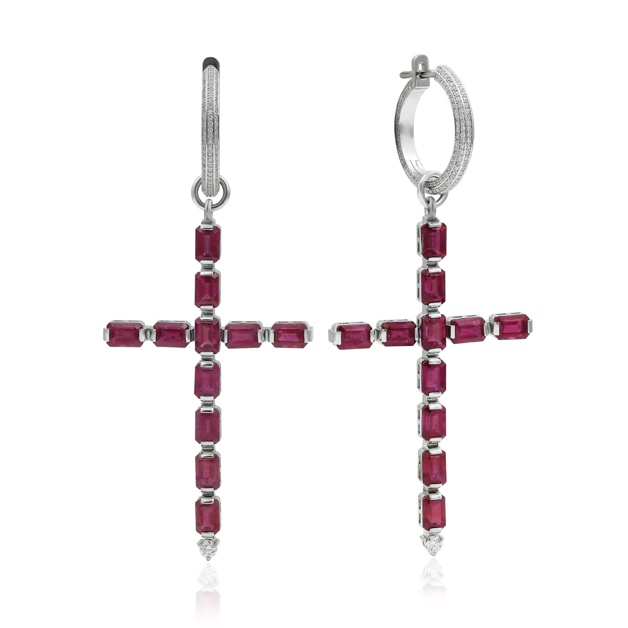 Серьги-кресты из белого золота с рубинами и бриллиантами