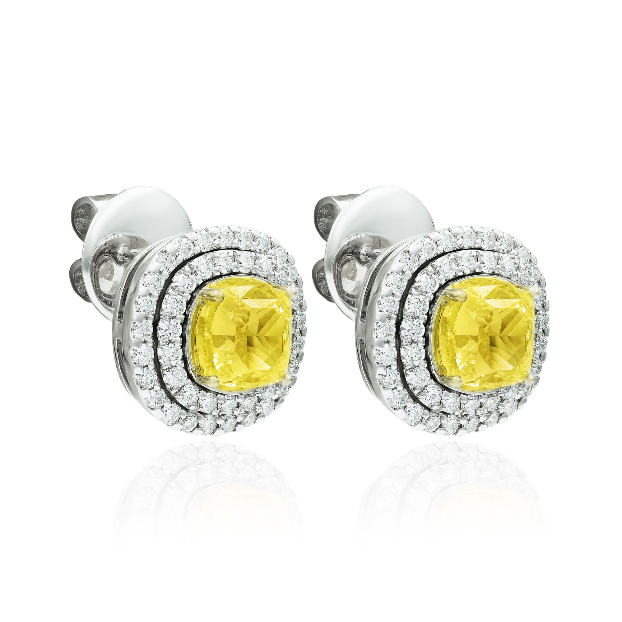 Пусеты из белого золота с желтыми бриллиантами 2.46 ct