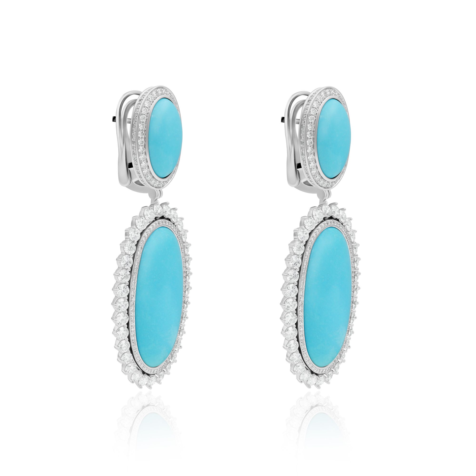 Серьги из белого золота с бриллиантами и бирюзой 15.384 ct |
