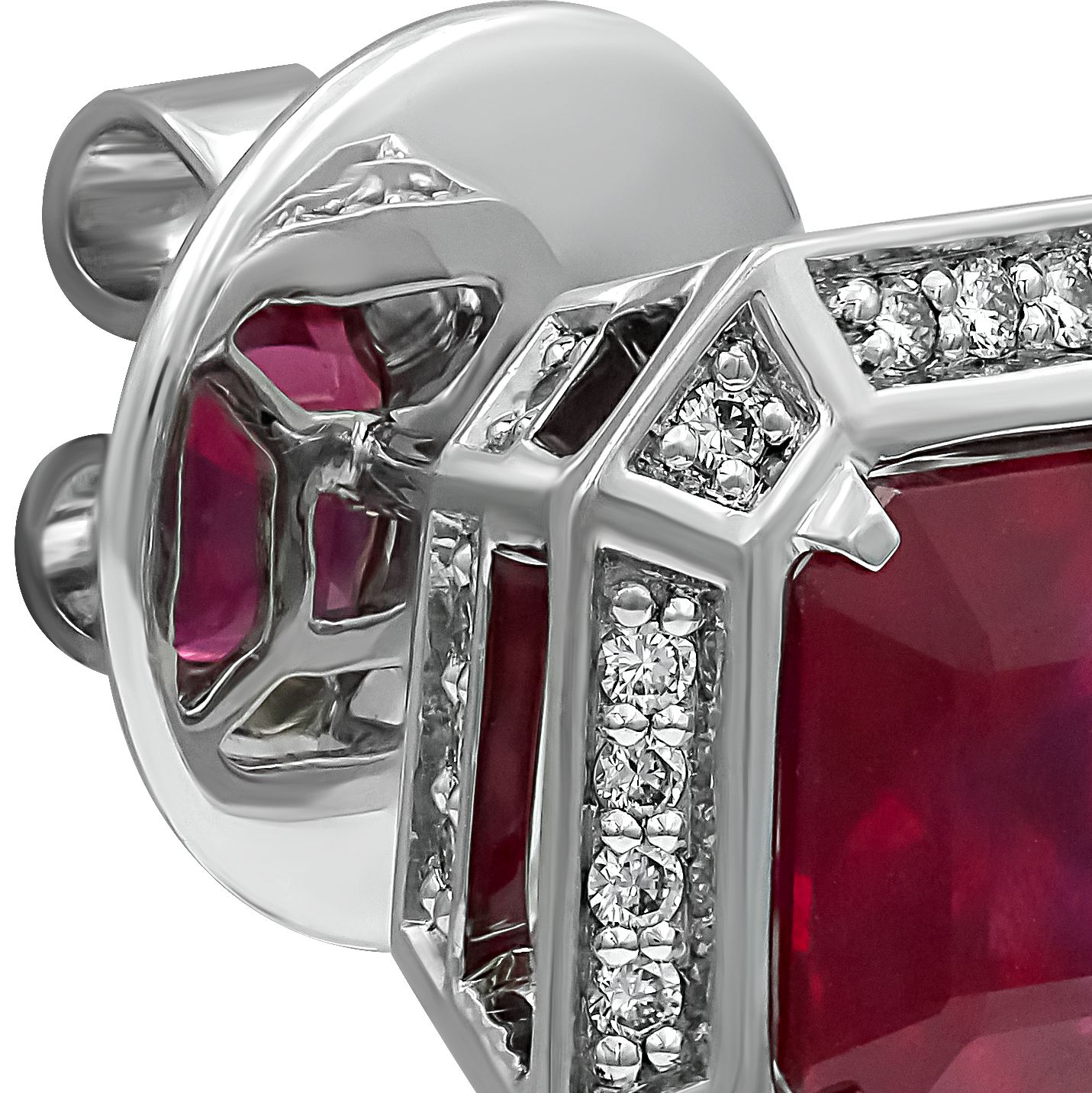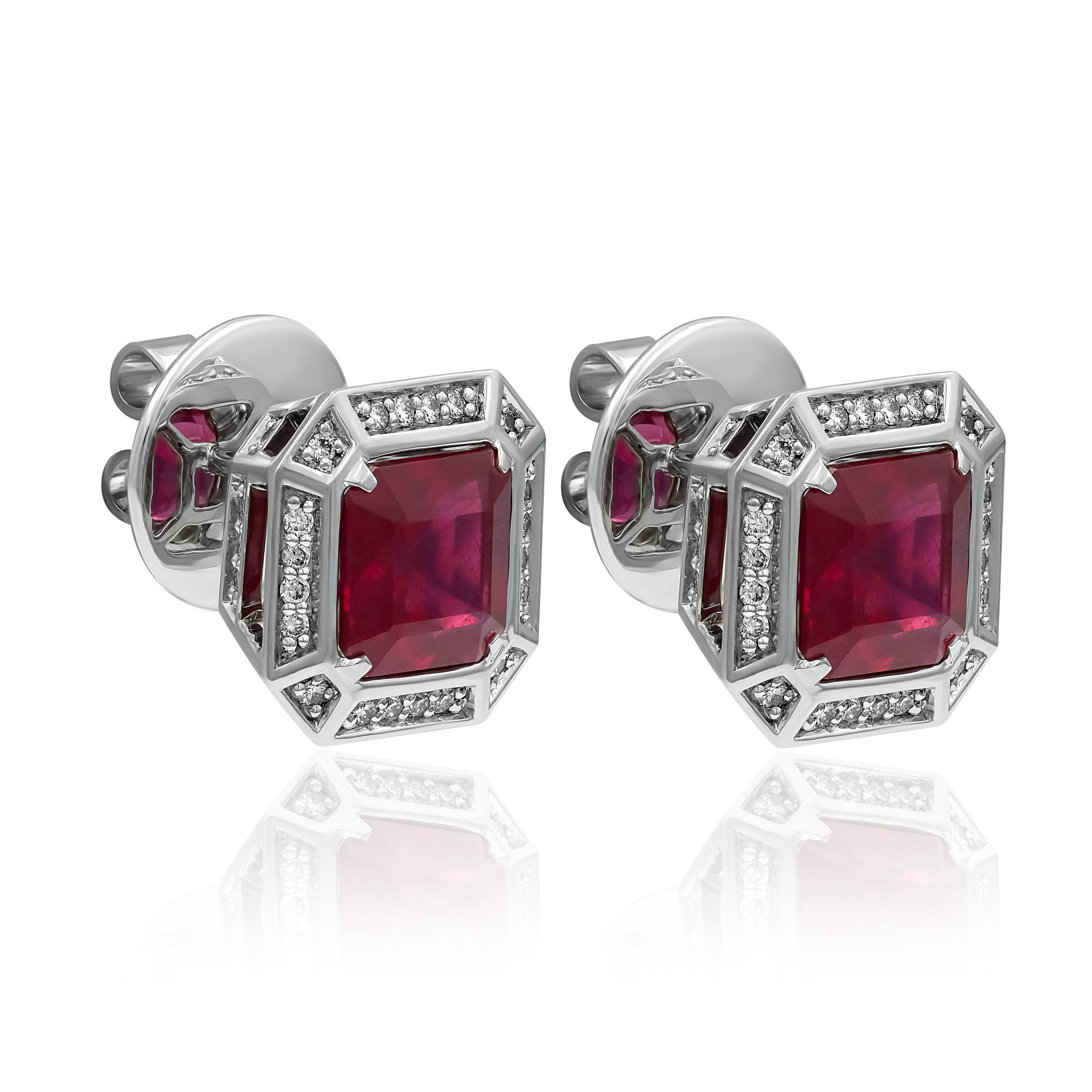 Пусеты из белого золота с рубинами 4.96 ct и бриллиантами