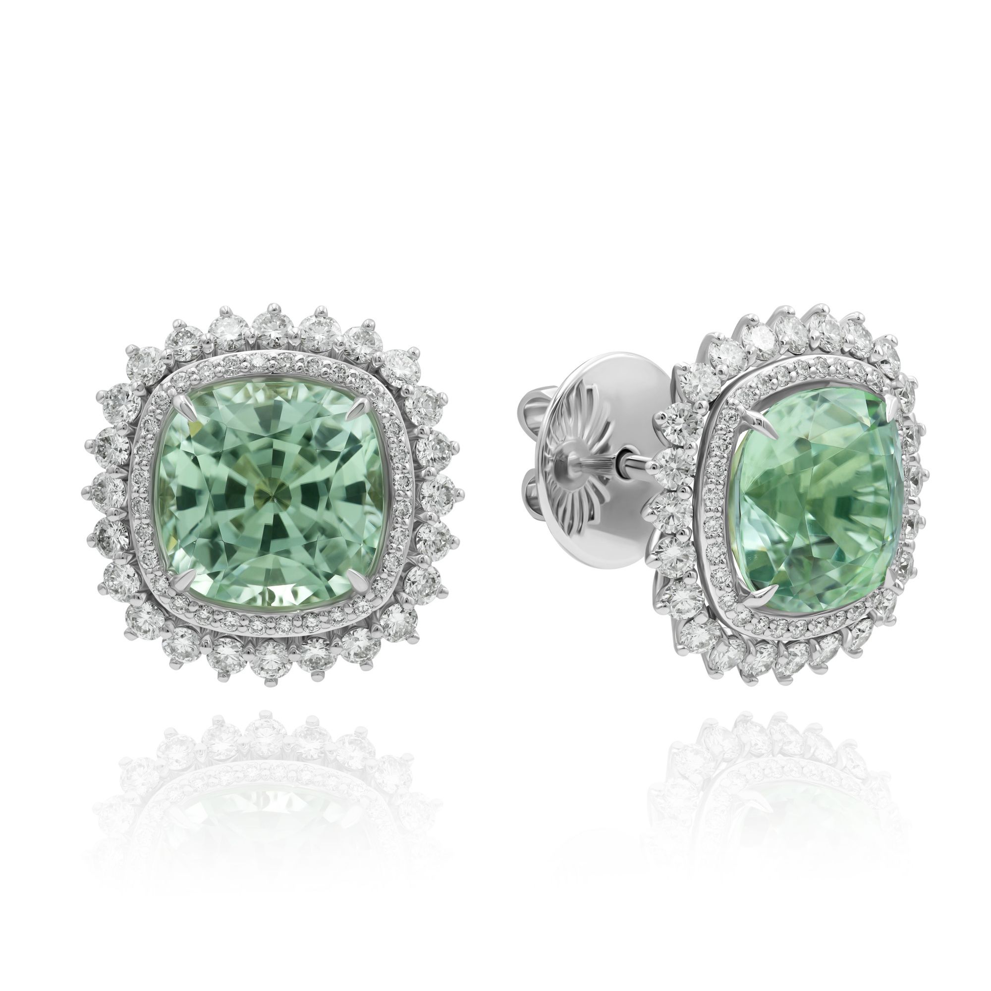 Пусеты из белого золота с бриллиантами и турмалинами 9.4 ct