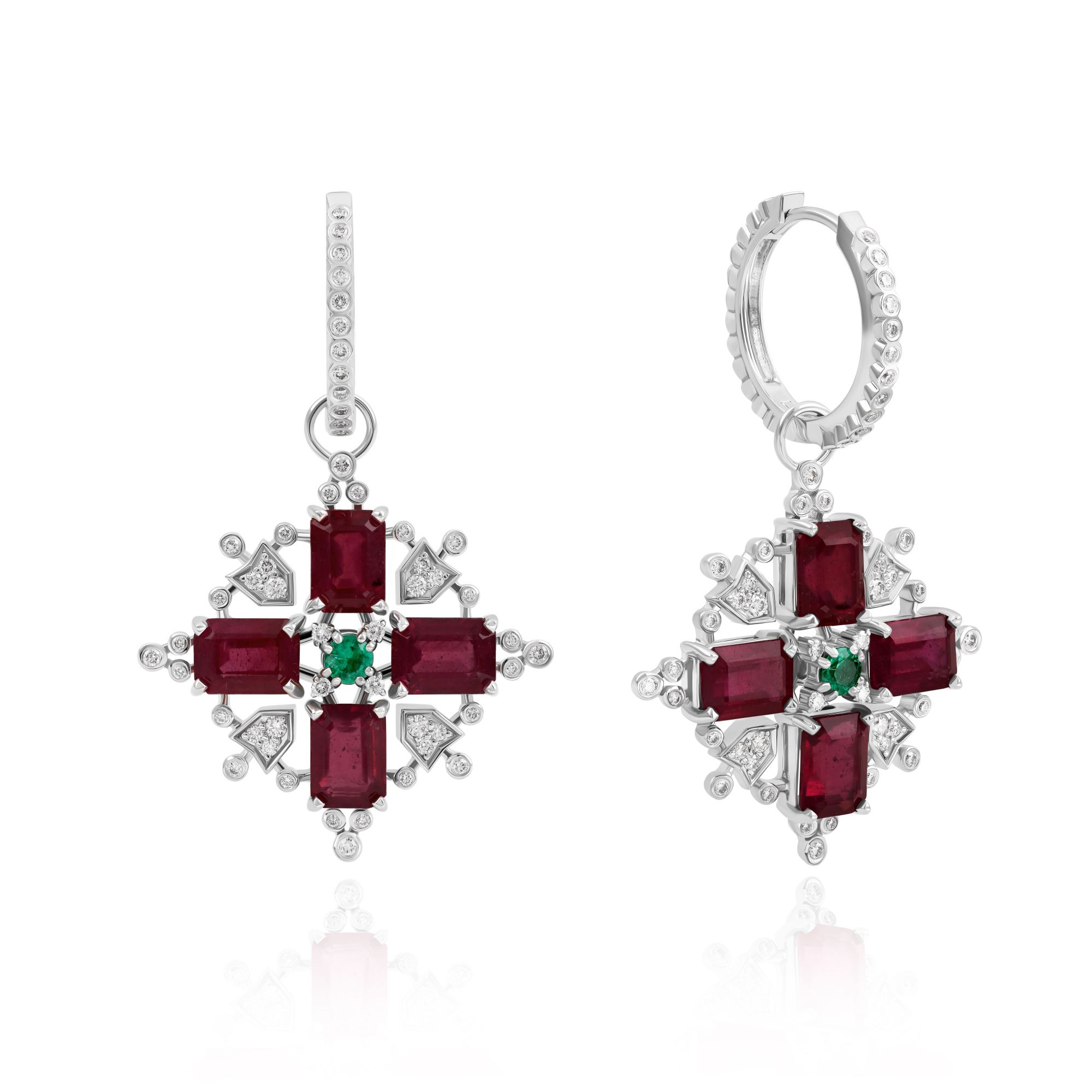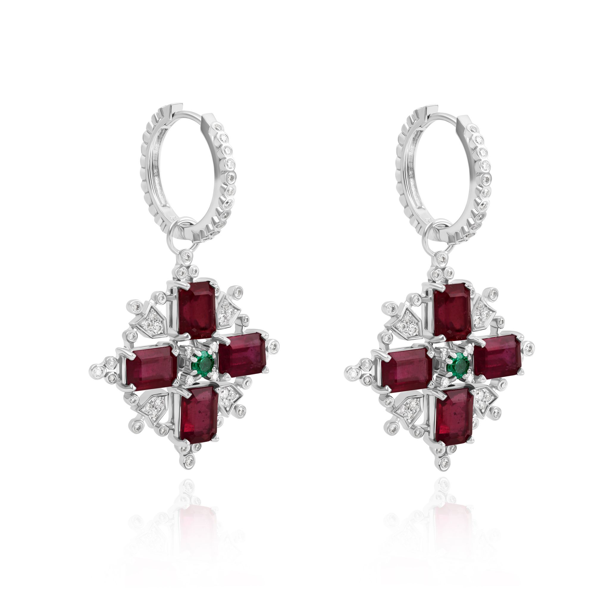 Серьги из белого золота с бриллиантами, изумрудами и рубинами 11.83 ct