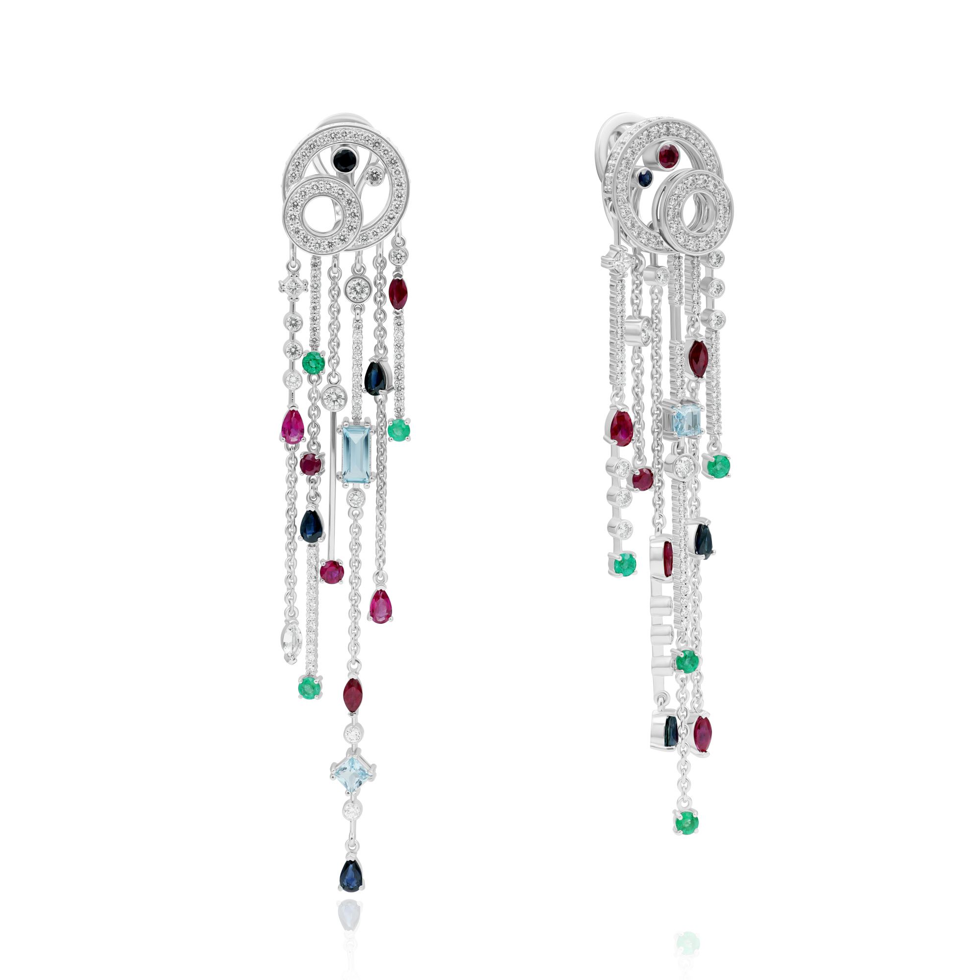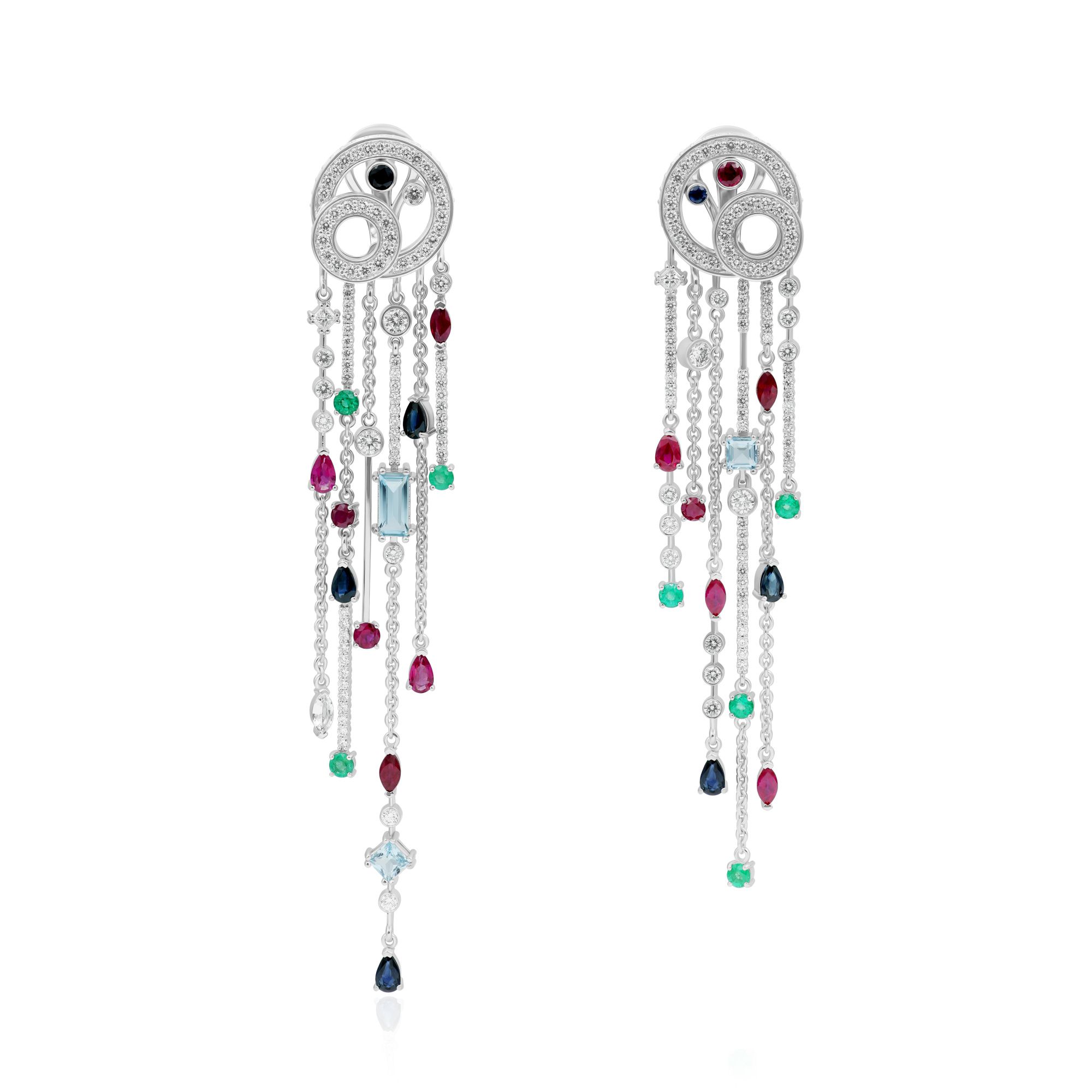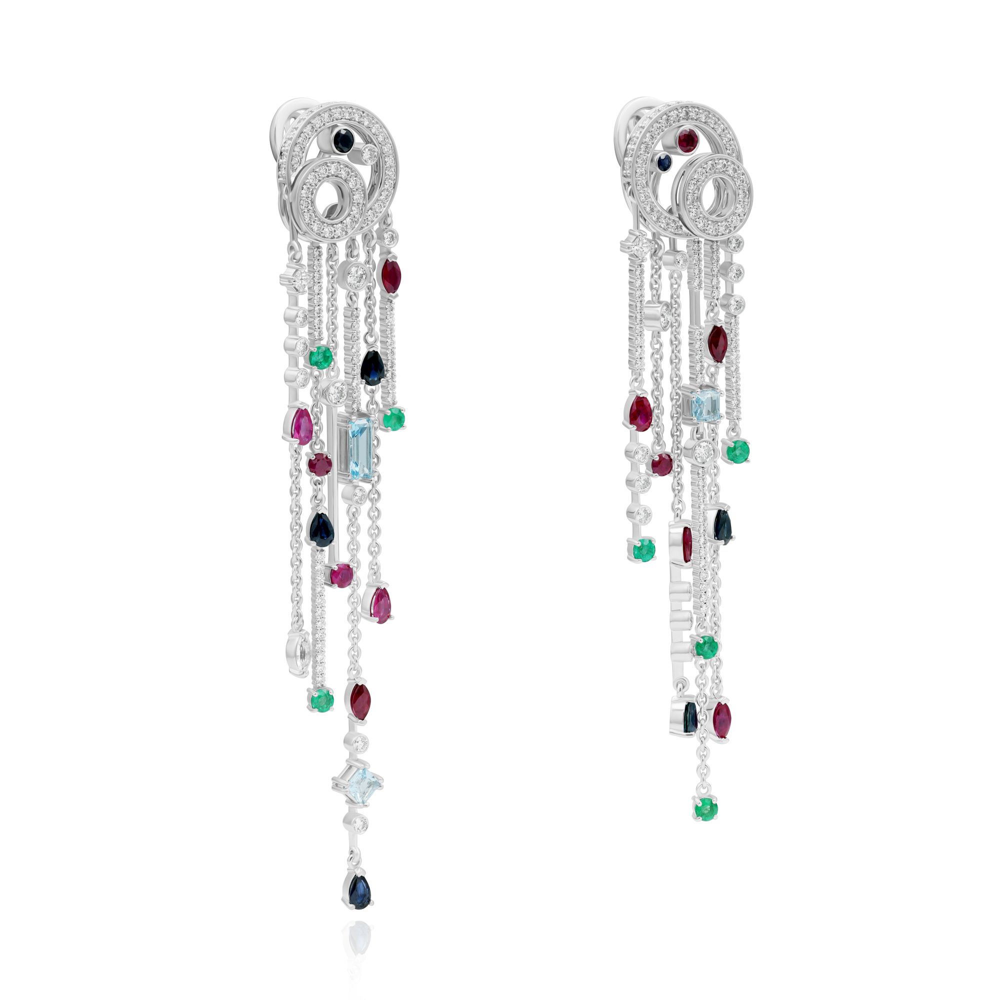 Серьги из белого золота с сапфирами, рубинами, изумрудами, бриллиантами и топазами |