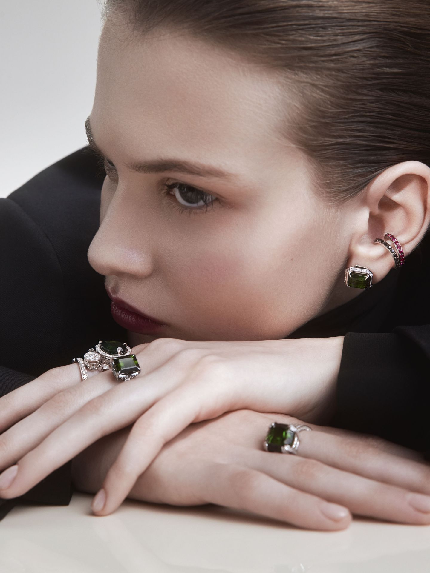 Пусеты из белого золота с изумрудами, рубинами, сапфирами и бриллиантами от 1 402 000 ₽