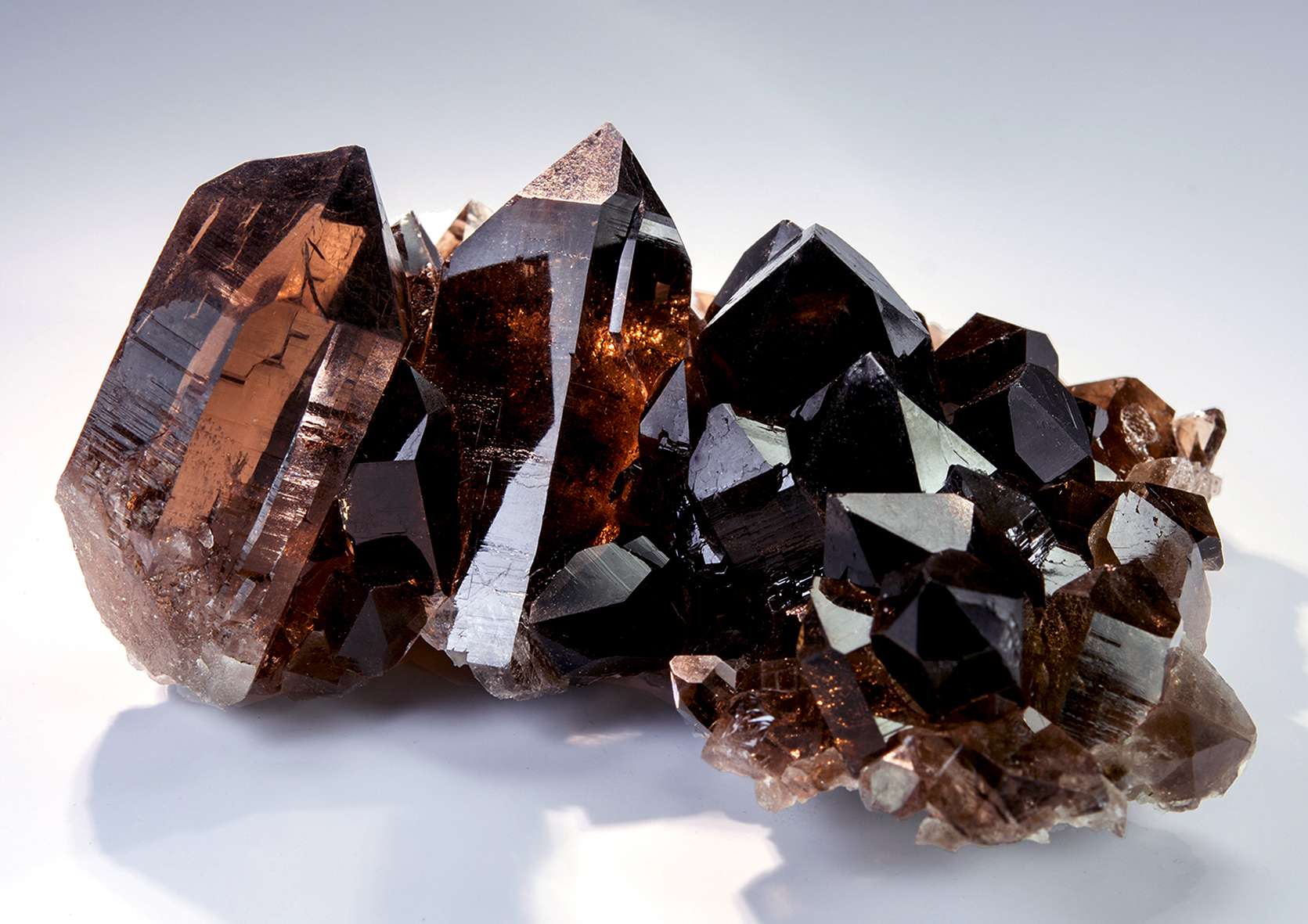 Этот минерал — разновидность кварца, иногда его называют «дымчатый кварц». Цветовая гамма представлена разными оттенками коричневого, самыми популярными являются золотисто-коричневые кристаллы. Месторождения есть в Бразилии, Швейцарии и США.